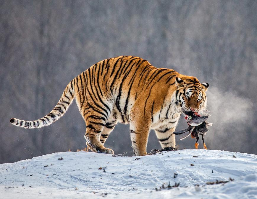 Assim como outros felinos, como os leões, os tigres costumam caçar à noite e podem comer até 25 quilos em uma única noite.