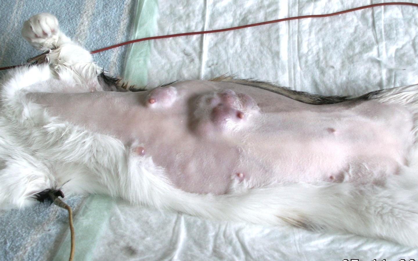 Também é comum que uma mesma mama afetada apresente múltiplos nódulos, embora seja normal que várias mamas sejam afetadas (você vai observar o inchaço nas mamas da felina). Cerca de 60% das gatas apresentam mais de um tumor quando diagnosticadas. Os nódulos linfáticos próximos também são frequentemente afetados.