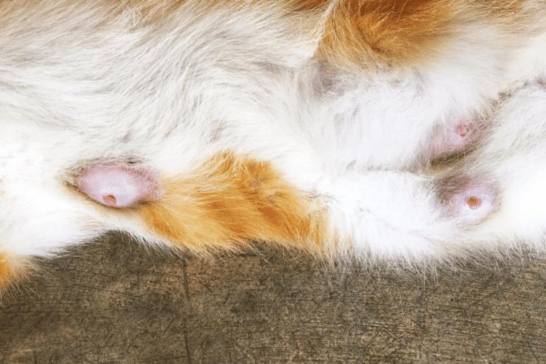 - Protuberância em uma ou várias mamas (inchaço da mama na gata)