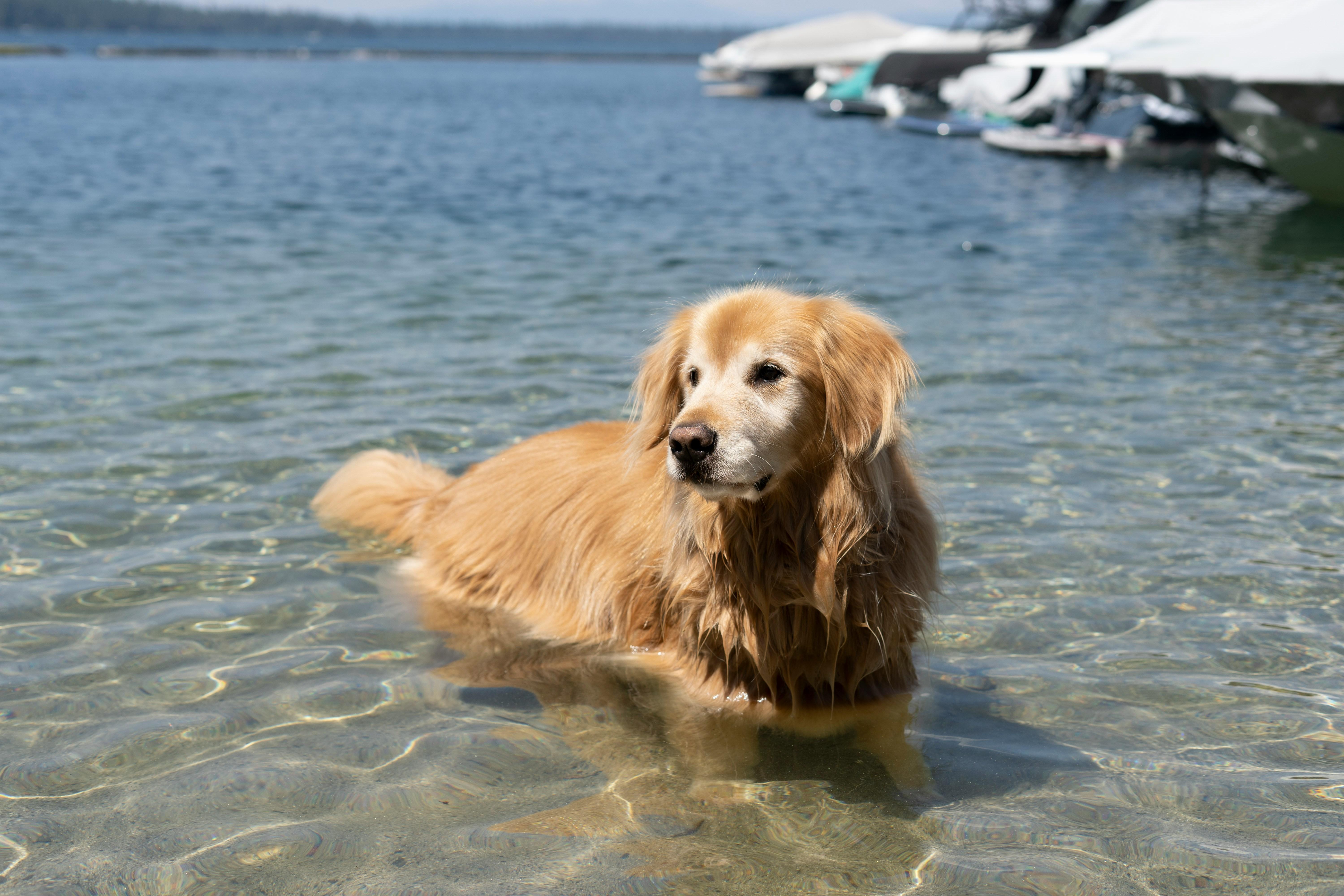 Essa coloração já é mais rara. Pode variar em tons dourado e creme, podendo também incluir tons bem mais claros, quase brancos. Sabe aquele Golden que você olha e ele parece ser branco? Esse é o Golden Retriever com cor água.