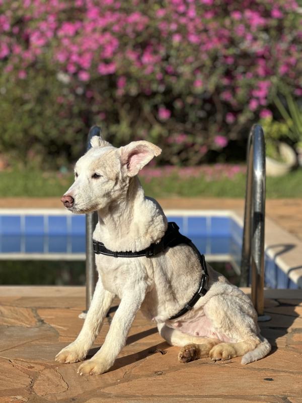 Adotei uma Border de 7 aninhos e queria saber qual é a cor “oficial” dela. Precisamos tosá-la toda, de tão judiada que veio do canil. Por essa foto, podem me ajudar?
