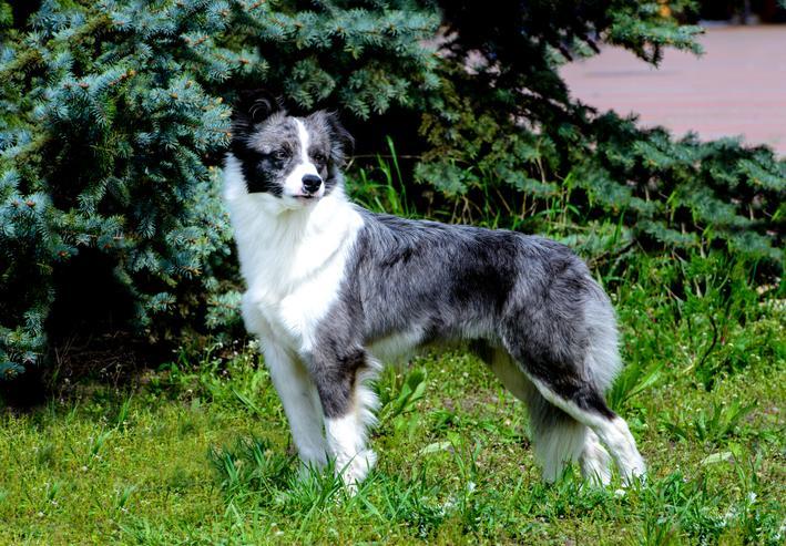 Essa pelagem, que anteriormente não era aceita pelos pastores por aludir à sua semelhança com um lobo, se deve ao gene M dominante heterozigoto, causando a cor azul como uma diluição da cor preta devido à presença desse gene diluente.