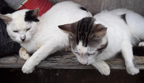 meu gato e o que esta com cabeça baixa essa e a namorada dele ele foi castrado e esta muito fraco jaa faz 3 meses que ele nao se recupera e o homem que castrou ele nao era veterinario oque devo fazer para curalo