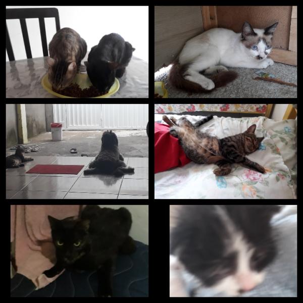 Tenho Uma gatinha isadora ja esta castrada a 2 anos peguei 2 gatinha na rua e mandei castra e pra doação mais só dou se a pessoa realmente amar se não eles fica aqui .O problema é porque a Isadora nao pode se encotra com elas porque a briga e feia.pra eles ir pro quintal tenho que feicha as porta que dá acesso o quintal.nessa foto tem a Isadora ,tigresa,neguinha e linda Maria.