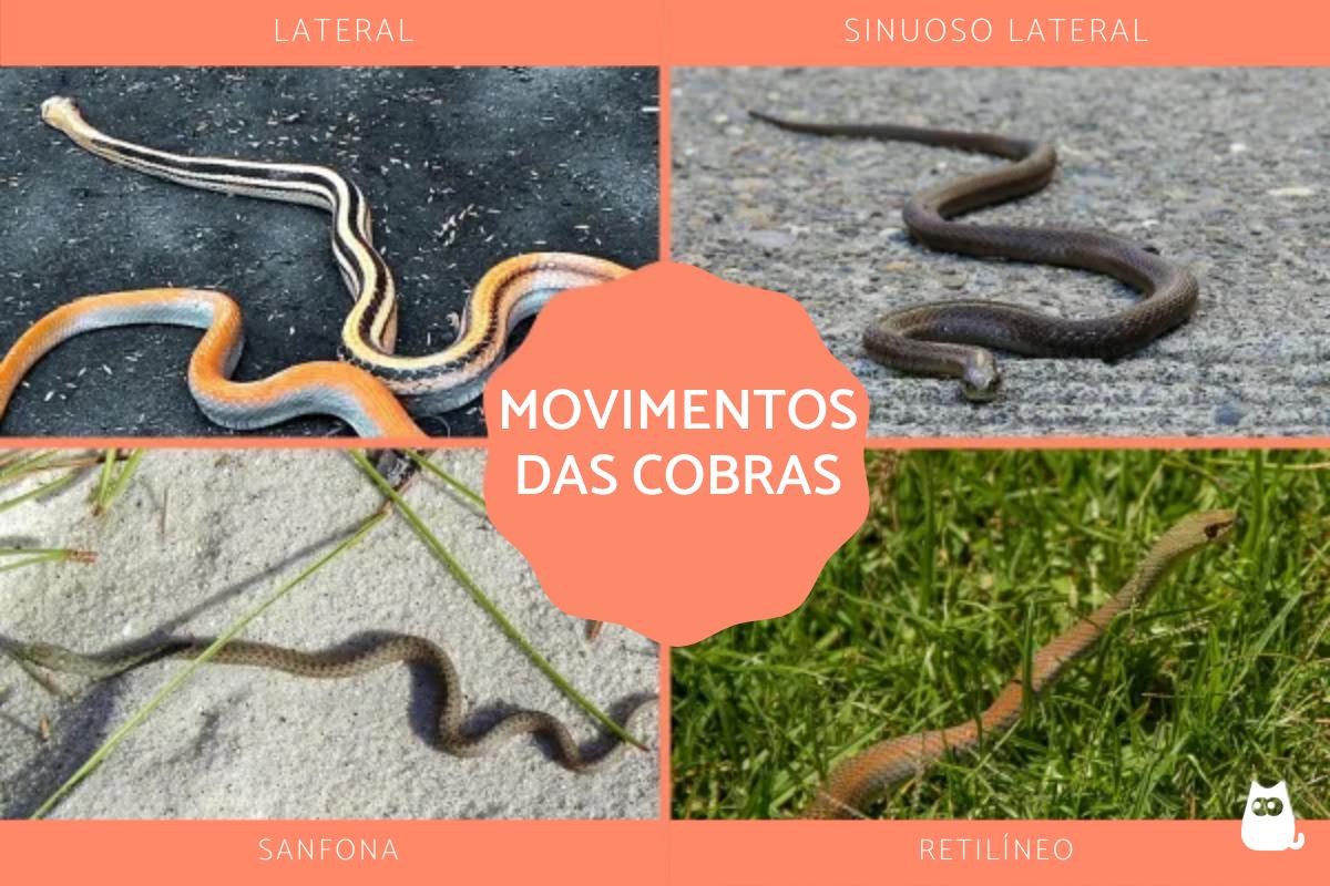 - Outra maneira que as cobras têm para se moverem e que também é muito curiosa é através do movimento de sanfona, útil quando estão em um canal ou sobem em alguma árvore. Nesses casos, o réptil estende o corpo para frente, ao mesmo tempo que vai formando o S para os lados.