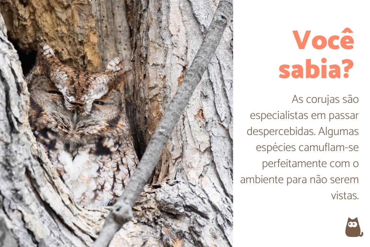 Algumas espécies de corujas que se camuflam na natureza são: