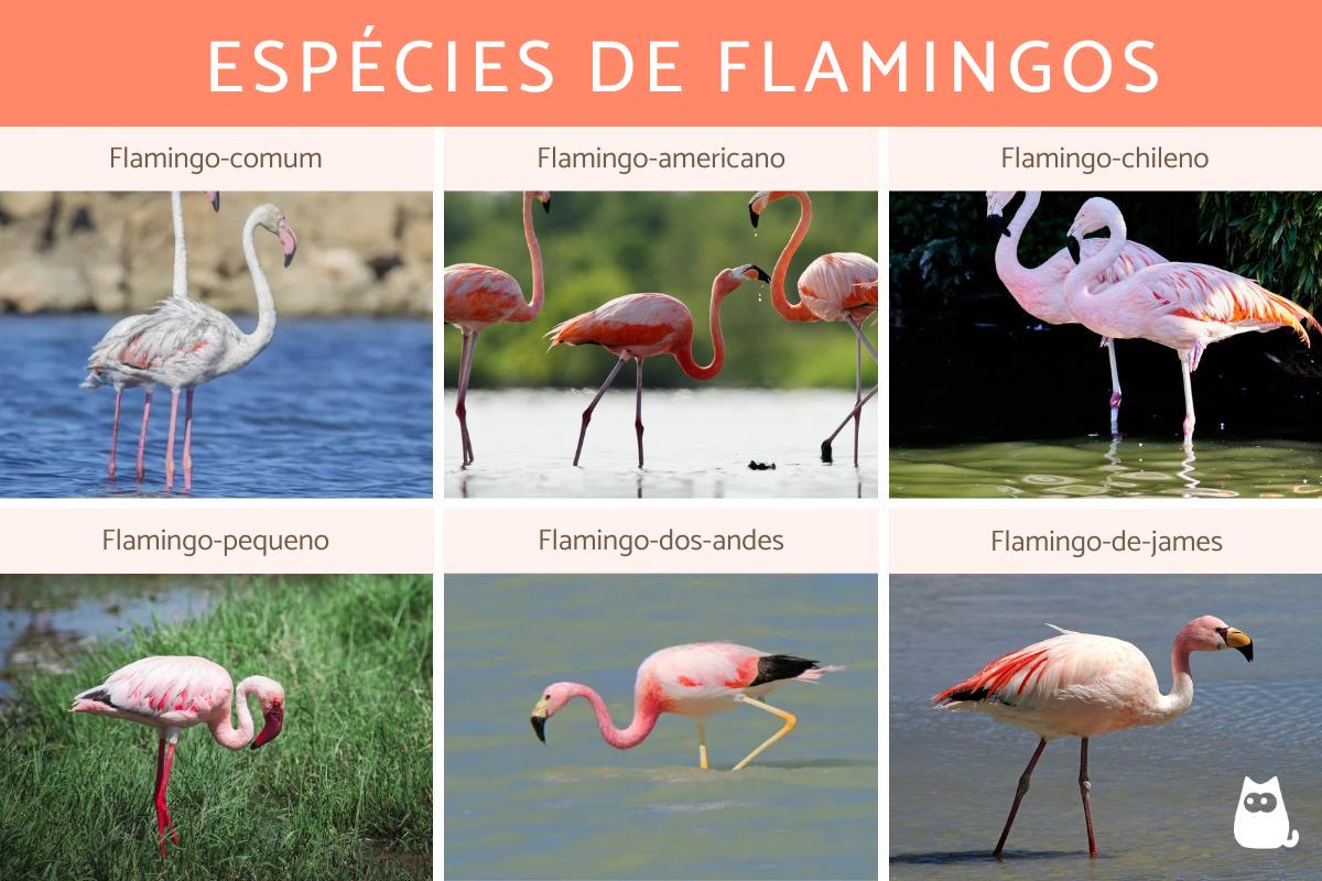 Iniciamos esta lista de curiosidades sobre os flamingos falando sobre os tipos de flamingos que existem. Embora de forma geral possuam traços semelhantes, há diferentes tipos de flamingos, cada um com suas particularidades. As espécies de flamingos estão agrupadas na família Phoenicopteridae, dentro da qual são reconhecidos três gêneros: Phoenicopterus, Phoeniconaias e Phoenicoparrus. No total, são seis espécies, as quais são: