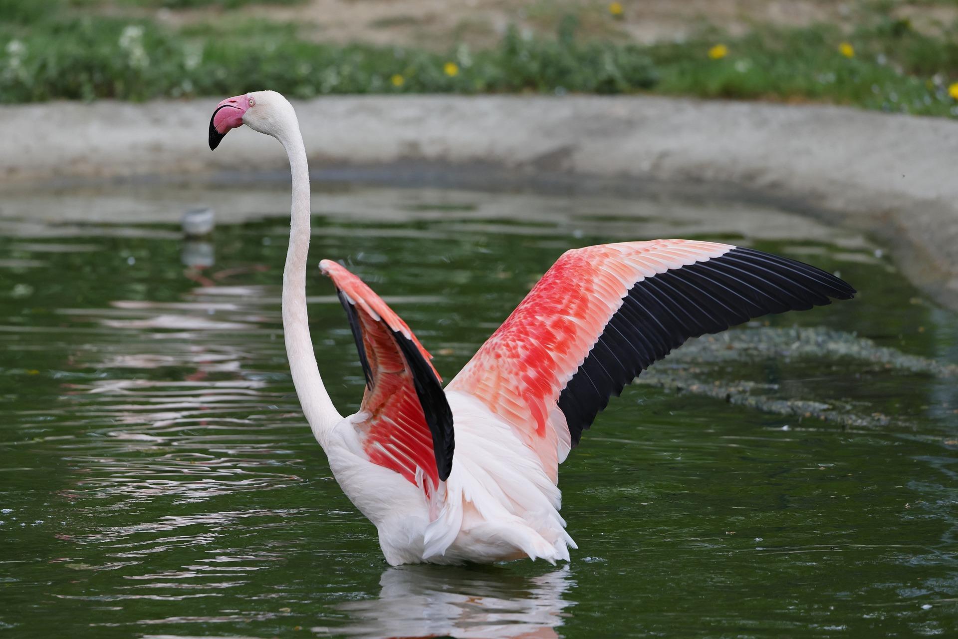 - Flamingos-comuns tendem a apresentar um tom mais claro de penas, mas nas pontas das asas as cores se tornam mais escuras e brilhantes.