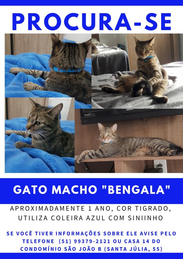 Meu gatinho fugiu no dia 15/04/2021 de manhã e ainda não o encontrei. Moro no bairro da pecuária em Campos dos Goytacazes - RJ E ACREDITO QUE ELE AINDA ESTEJA PELAS REDONDEZAS. Qualquer informação podem me chamar no Instagram @lilliansalarolli