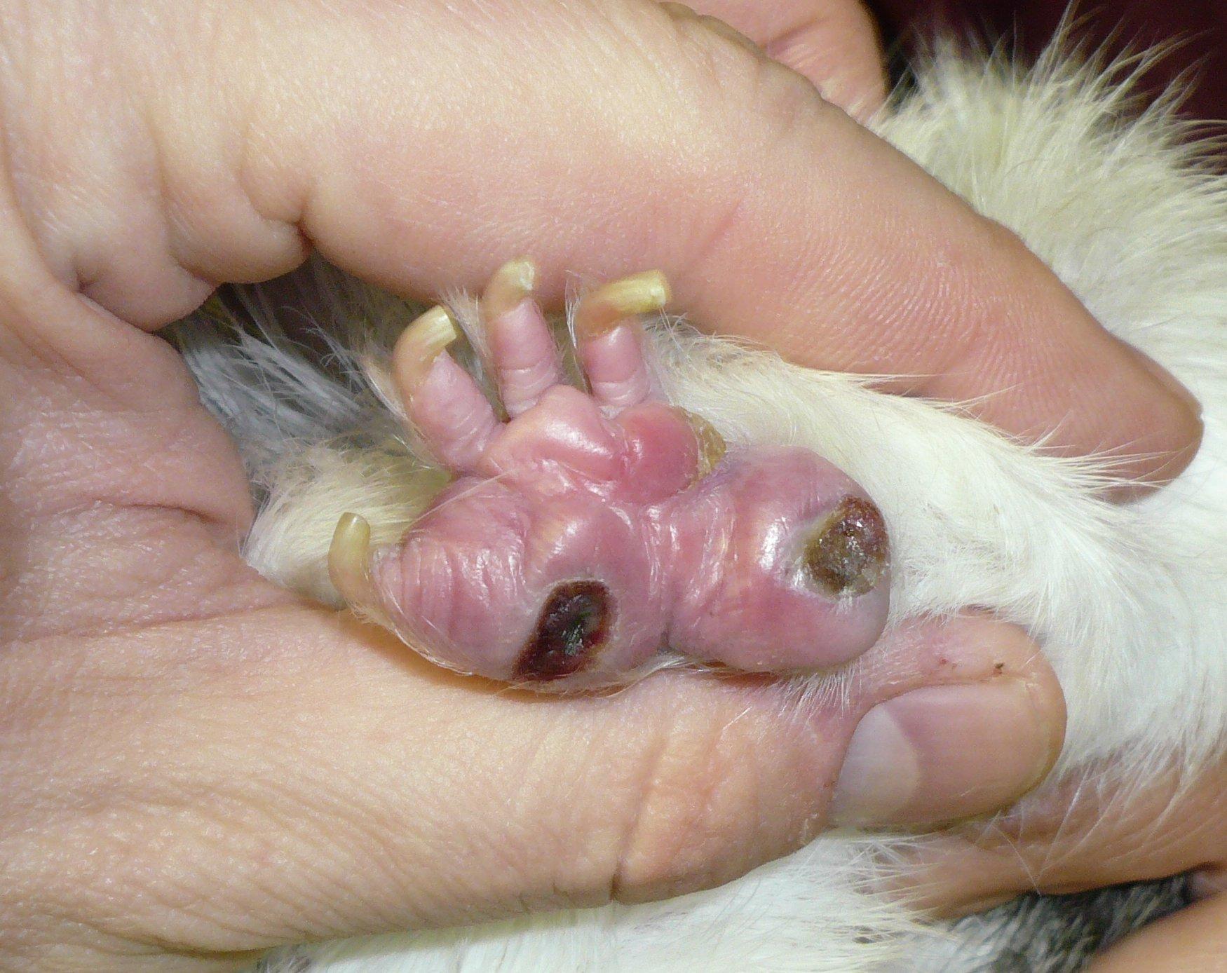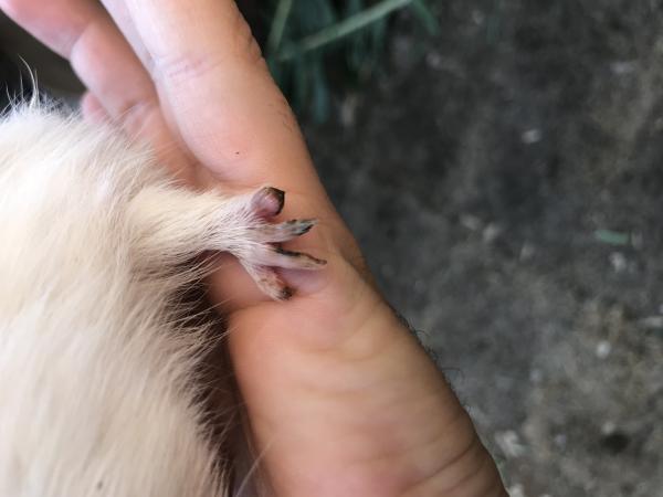 Meu porquinho ele está com um dedinho inchado e vermelho, parece estar encravado a unha dele, porque não tem unha nesse dedinho. Ele tem 2 meses de vida mais ou menos. O que devo fazer ? Foto do dedinho no perfil