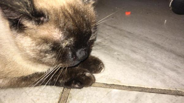 Minha gatinha siamês apareceu com rosto inchado e n está comendo.o q pode ser?