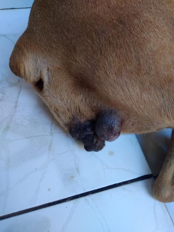 Tenho uma Boxer ,querida educada muito obediente e ela tem 10(dez) anos e tem saído umas bolhas grande bem próximo a região vaginal dela,e tem sangrado essa bolha gostaria de saber o que posso dar ou passar prá eliminar essa bolha ?e o que pode ser isso?