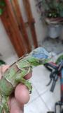 Tenho uma iguana de resgate , e ele não quer ae alimentar, e esta com umas manchas azuis , podem me ajudar?