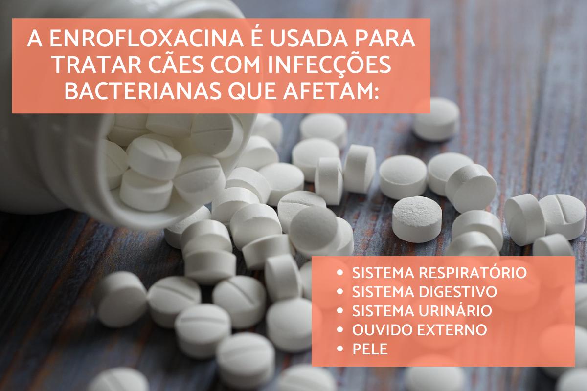 Se você quer saber mais sobre a enrofloxacina para cães, não perca o seguinte artigo do PeritoAnimal, no qual detalhamos para que serve, quando usar, quais são suas principais contraindicações e seus efeitos colaterais.