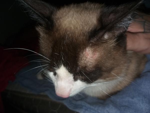 Hoje notei que meu gato tem duas manchas no rosto simétricas de cada lado que aparentemente tem uma falta de pelo pequena ,e uma marca vermelha de arranhão,então não sei se é algum fungo ou apenas marcas de briga,,ele não sente dor aparentemente e não coça