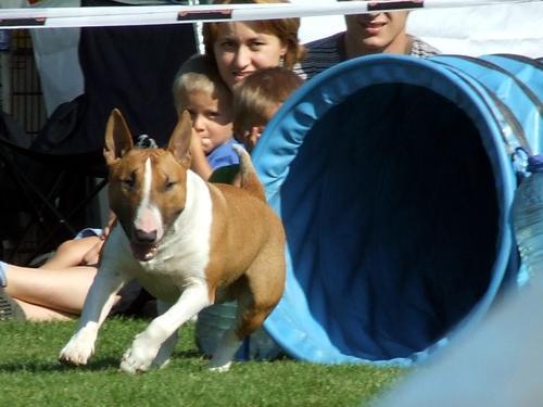 Este tipo de exercício para o Bull Terrier Inglês é um pouco menos ativo que os anteriores, embora seja igualmente divertido e no qual o cachorro poderá divertir-se ao mesmo tempo que aprende. Trata-se de um percurso de obstáculos que incluem varas para saltar, tuneis para atravessar, entre outros. É um exercício perfeito para um Bull Terrier Inglês que também estimulará a sua mente.