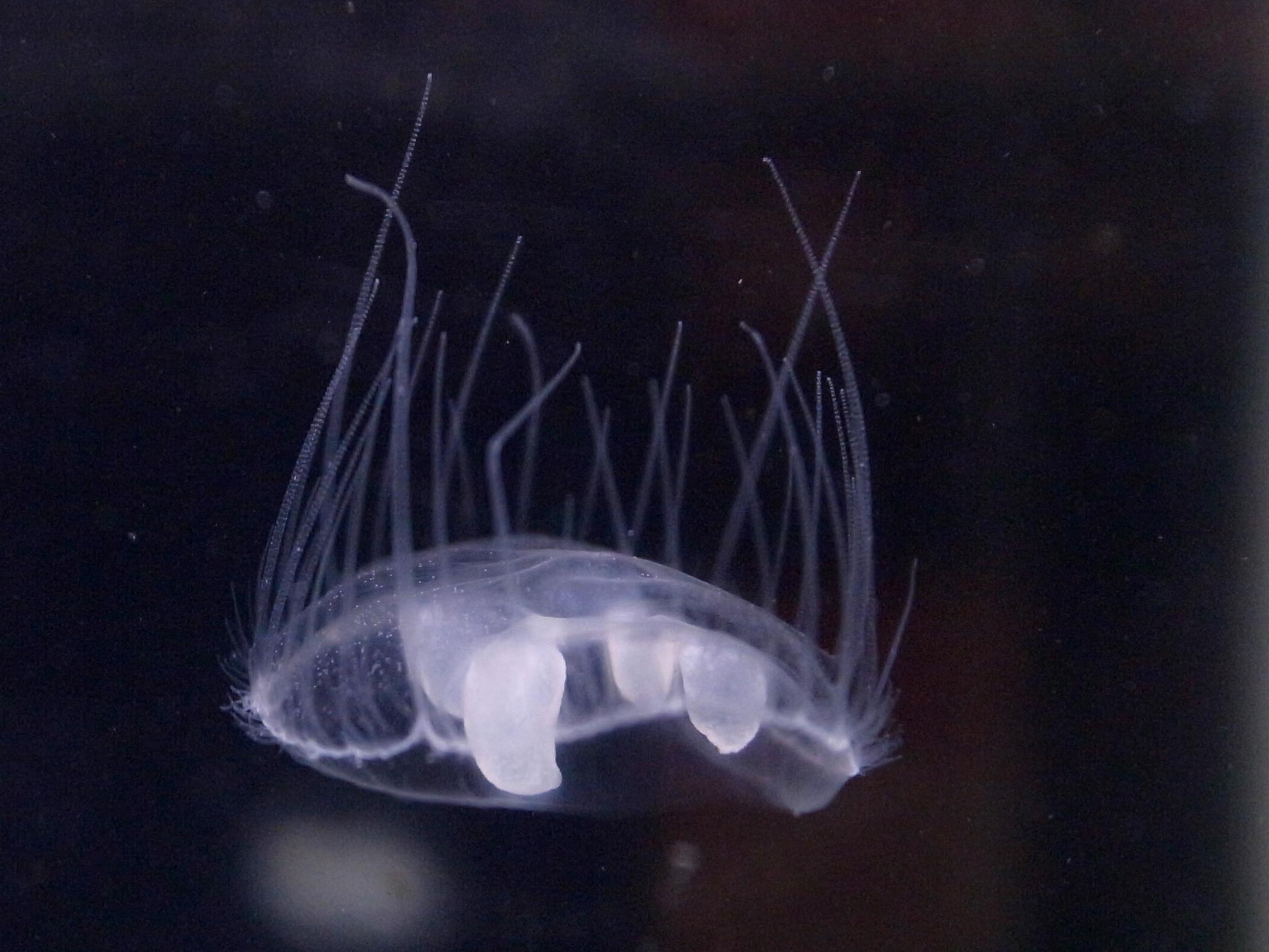 É uma água-viva com um guarda-chuva grande e transparente, no entanto, tem um traço peculiar e é sua capacidade luminosa devido a preseça de uma proteína que permite esta reação. A água-viva de muitas nervuras é outro tipo de cnidário que foi reportado como inofensivo para os seres humanos.