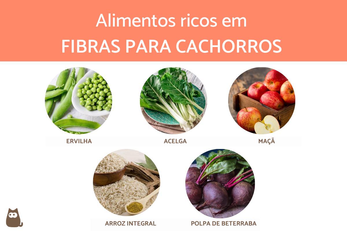 Há uma grande variedade de alimentos ricos em fibras para cachorros. As opções mais utilizadas como fonte de fibras para cães são vegetais, subprodutos vegetais e grãos integrais.