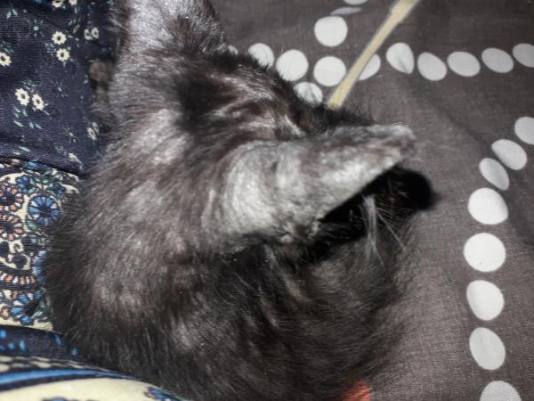 Minha gatinha, o pêlo dela caiu quase todo, ela ainda é um bebê, encontrei ela na rua, já tava com o pelo caindo só q tava menos, só tinha na cabeça