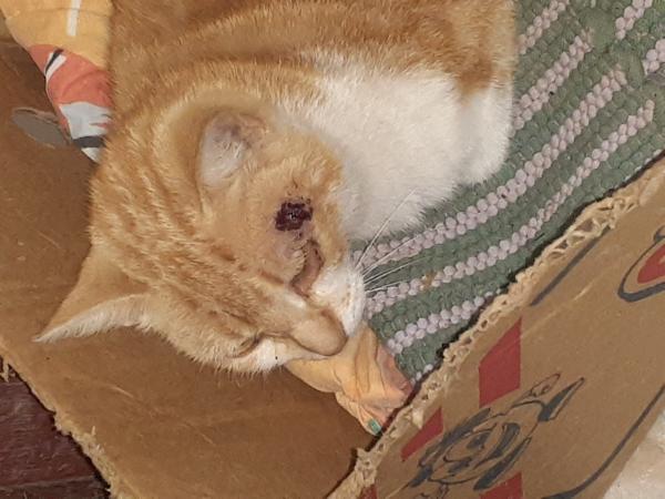 Meu gatinho esta com o nariz muito entupido c alguns nodulos a cima do nariz,não sei o que dar p ele .Precido de orientações