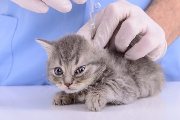 Assim, um gatinho que não tenha sido desparasitado internamente corre o risco de ter um crescimento reduzido, além de sofrer outros sintomas como diarreia, vômitos, mau aspecto do pelo ou anemia. Logo, se você não sabe se o gatinho visitou o veterinário ou se tem dúvidas, o melhor a fazer é ir a uma clínica assim que receber o gatinho em casa. Aí este profissional irá verificar e recomendará os medicamentos necessários.