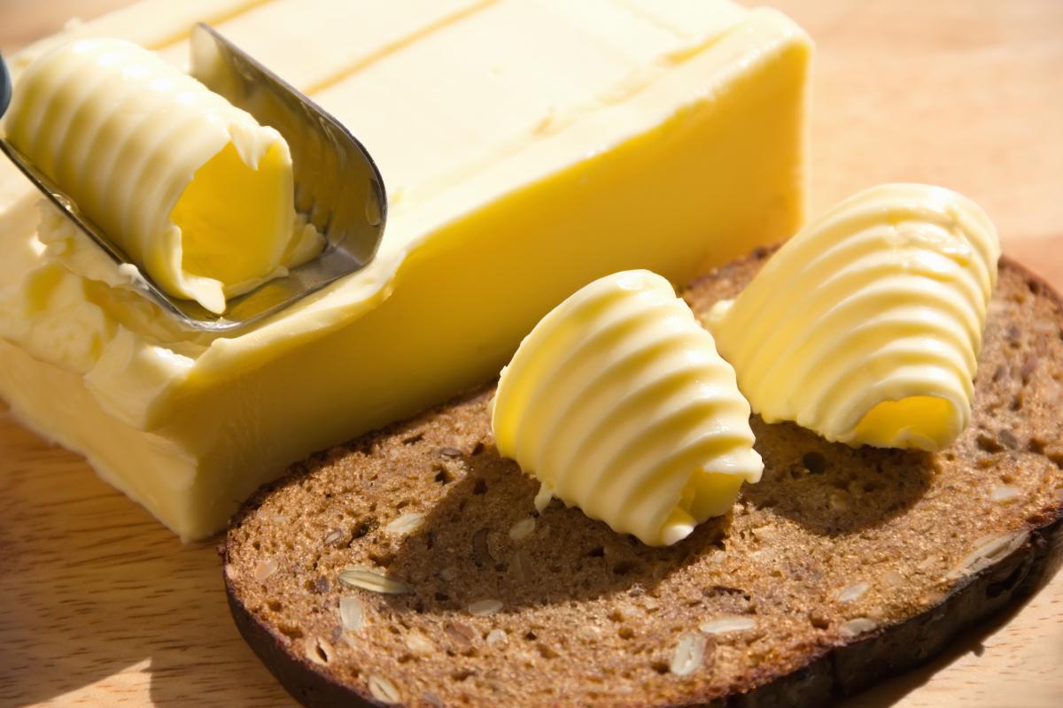 A manteiga é um produto lácteo de textura semissólida, obtido ao bater, amassar e lavar a gordura do leite, separando-a dos carboidratos e proteínas por meio da ruptura das membranas fosfolipídicas.