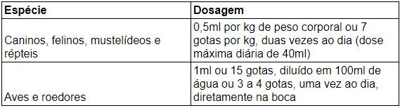 O produto é indicado nos casos em que é necessária a suplementação de aminoácidos e vitaminas do complexo B, assim como um aporte maior de glicose, como em situações em que o animal não consegue se alimentar de forma suficiente para suprir suas necessidades nutricionais. A dose varia de acordo com a espécie animal, conforme a tabela abaixo: