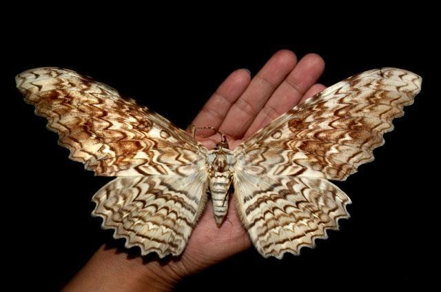 A famosa (Thysania agrippina) também pode receber o nome de diabo branco ou borboleta fantasma. Pode medir 30 cm da ponta de uma asa à outra e é considerada a maior mariposa do mundo. Típica da Amazônia brasileira, também já foi vista no México.