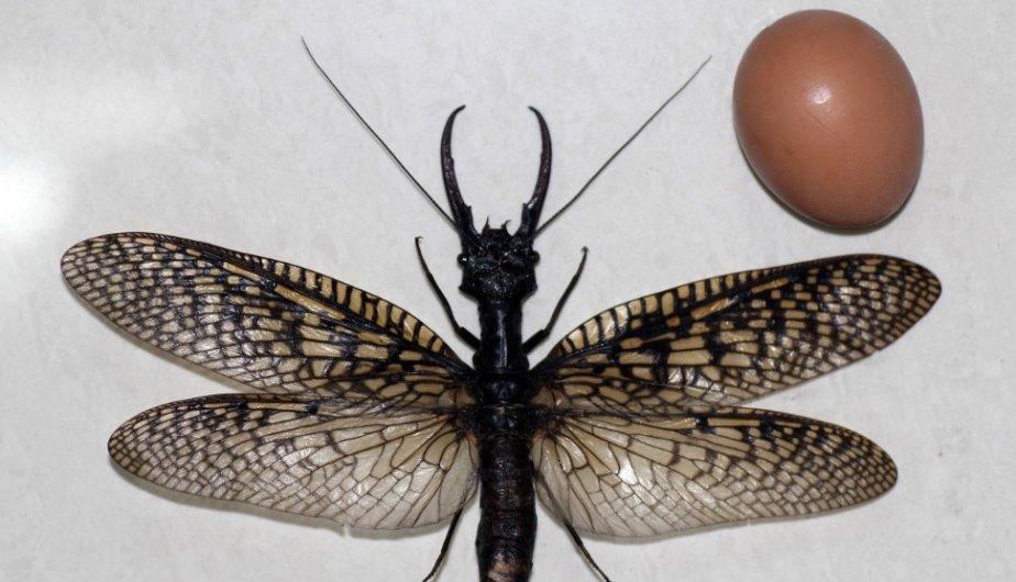 A Giant dobsonfly é um megalóptero gigante com uma envergadura de asa de 21 cm. Este inseto vive em lagoas e águas rasas no Vietnã e na China, desde que essas águas estejam limpas de poluentes. Parece uma libélula gigante com mandíbulas hiper-desenvolvidas. Na foto abaixo, há um ovo para demonstrar o tamanho deste inseto gigante.