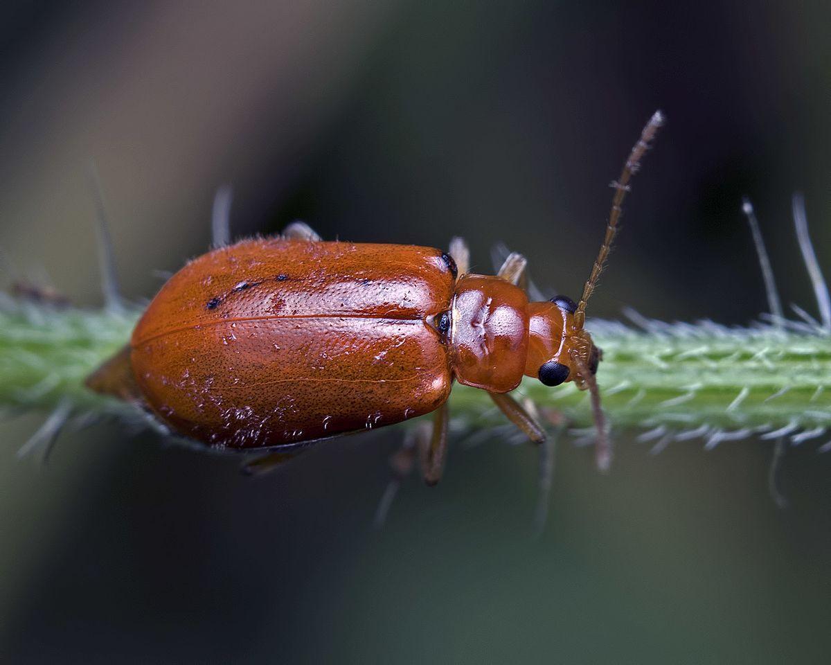 O Aulacophora foveicollis, apesar de ter um corpo mais alongado e a cabeça diferenciada, apresenta uma coloração tão vibrante que lembra as joaninhas. Ele é uma praga que ataca principalmente plantações de abóbora e milheto.