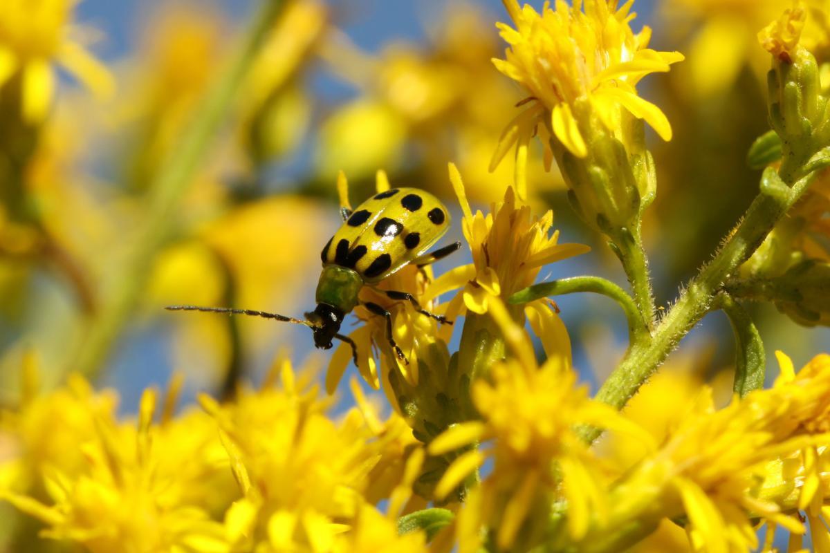 O besouro-do-pepino-malhado é um coleóptero da família Chrysomelidae, nativo da América do Norte e considerado uma praga agrícola. Os adultos medem cerca de 5 mm e possuem uma coloração amarelo-esverdeada característica, com seis manchas negras em cada élitro, por isso, é outro inseto parecido com joaninhas amarelas. Embora não tenham exatamente o formato oval das joaninhas, seu padrão de cores é muito semelhante ao de algumas delas.
