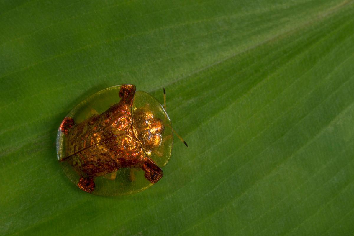 O Charidotella sexpunctata apresenta semelhanças com joaninhas devido ao seu pequeno tamanho e coloração chamativa. Pertence à família Chrysomelidae e está amplamente distribuído nas Américas. Sua aparência é variável, com tons que vão do marrom-avermelhado a um dourado metálico brilhante, quase espelhado.