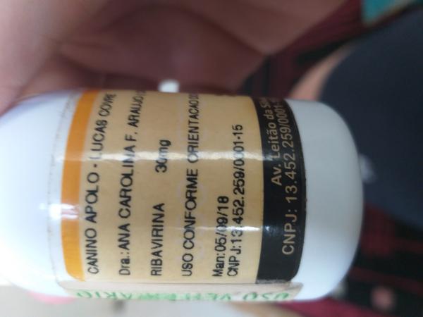 Ganhei 50 capsulas de ribavirina manipulada 30mg. Meu cachorro esta com 11 kg devo dar 11 caps por dias ou qual a dosagem correta, atualmente estou dando uma de manha e uma a noite