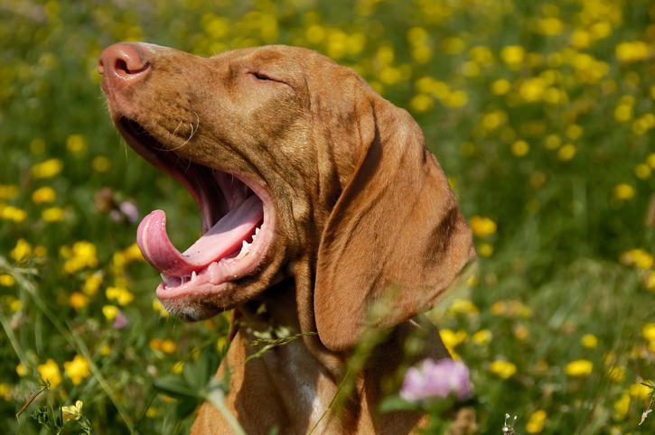 O bocejo, como sinal de calma, costuma estar acompanhado por outros sinais, como por exemplo orelhas para trás, voltas com a cabeça ou olhar de lado. Este sinal costuma indicar que o cachorro está incomodado ou que não entende o que você está pedindo. É uma linguagem dos cachorros bastante comum.