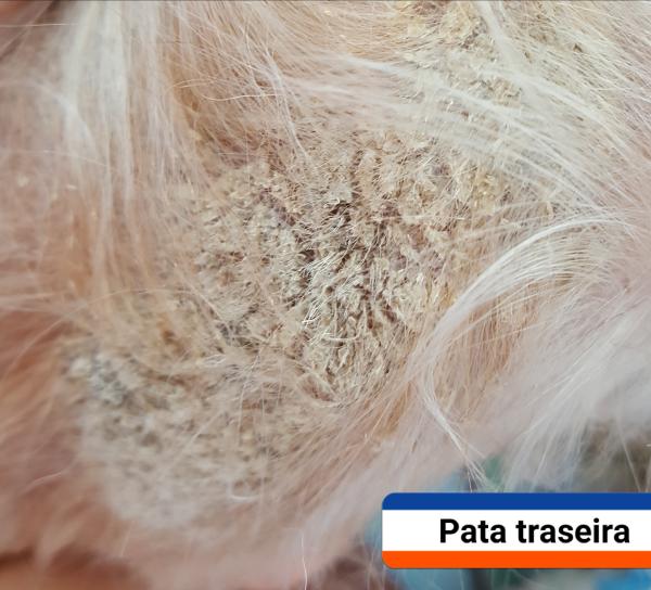 Além das crostas f tem um mau cheiro. já fiz vários tratamentos com vários veterinários e não melhora. na pele e no ouvido.