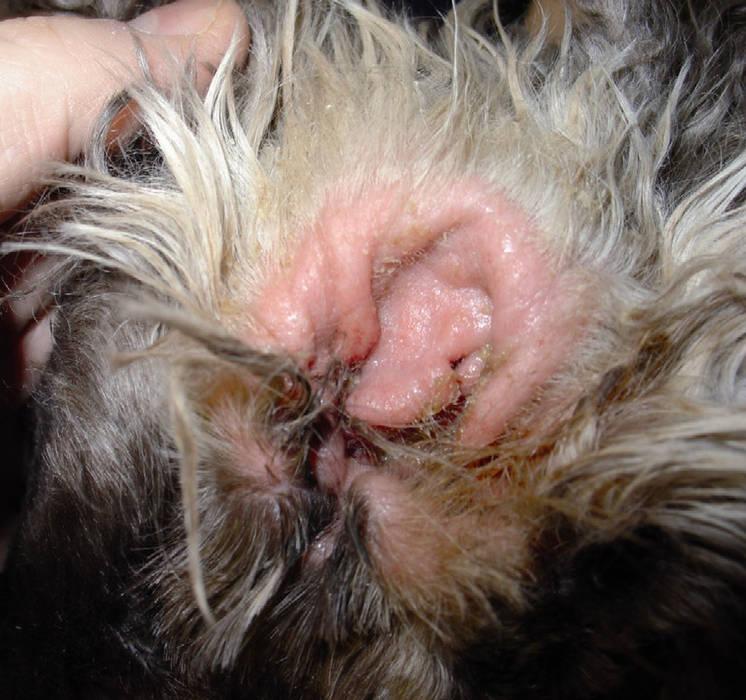 Os ouvidos são uma das zonas mais frequentemente afetadas por estes fungos. Devido a alguma doença endócrina ou qualquer alteração que afete o sistema imunológico do cachorro, os fungos ou leveduras comensais da pele sofrem um desequilíbrio e a Malassezia aproveita para se reproduzir exageradamente no ouvido no cachorro causando uma otite externa.