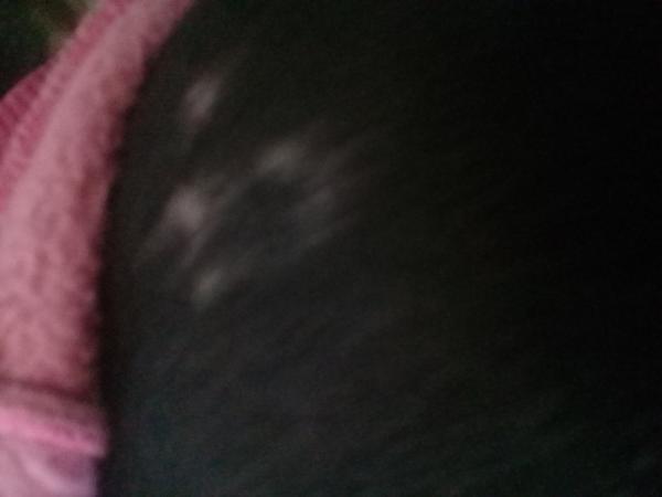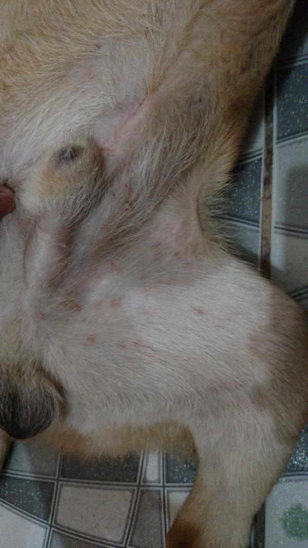 Minha pit está com 1 e 6 meses teve a primeira cria e depois disso percebi que a barriga dela entre as tetas ficou escura e áspera,o que pode ser isso?