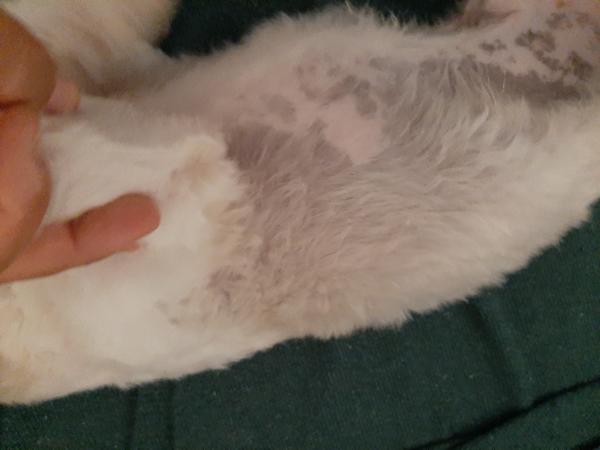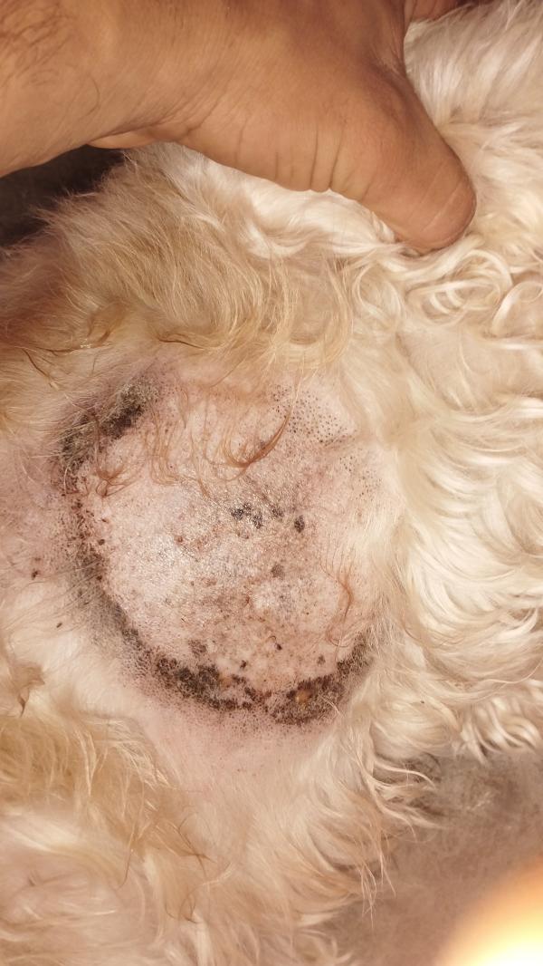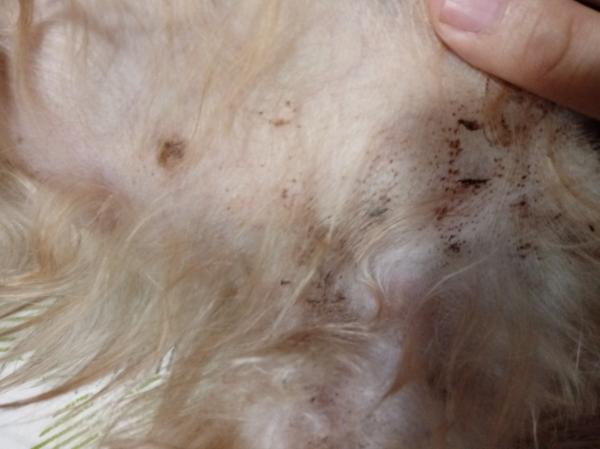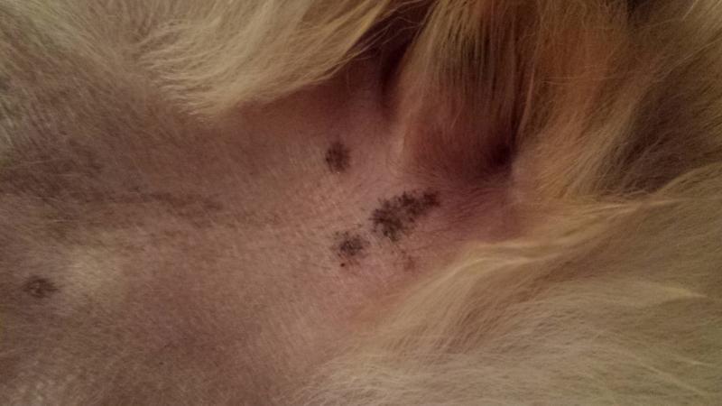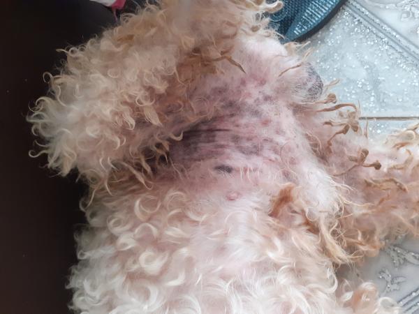 depois que a minha cachorrinha voltou do banho e tosa, ela começou a ficar com manchas escuras, principalmente na barriguinha e nas partes intimas, será que é algum fungo?