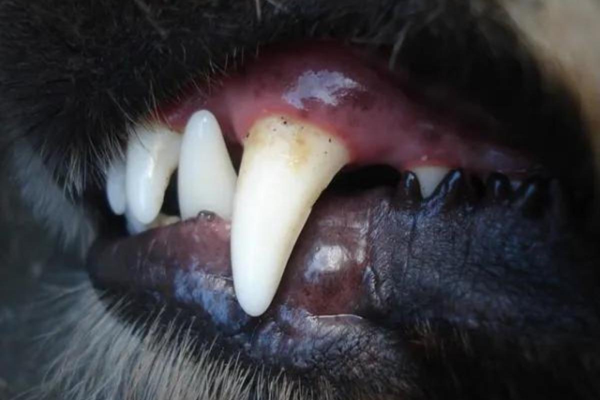 Quando ocorre um traumatismo forte na cavidade oral, é possível que se fraturem uma ou várias peças dentais devido ao impacto. Quando se tratam de fraturas completas (aquelas que afetam toda a estrutura dental e chegam ao canal pulpar), pode ocorrer uma pulpite (inflamação da pulpa), seguida de uma infecção ou da formação de abcessos. Nestes casos, além da fratura, é comum encontrar os dentes do cachorro de cor preta, devido à necrose do tecido.