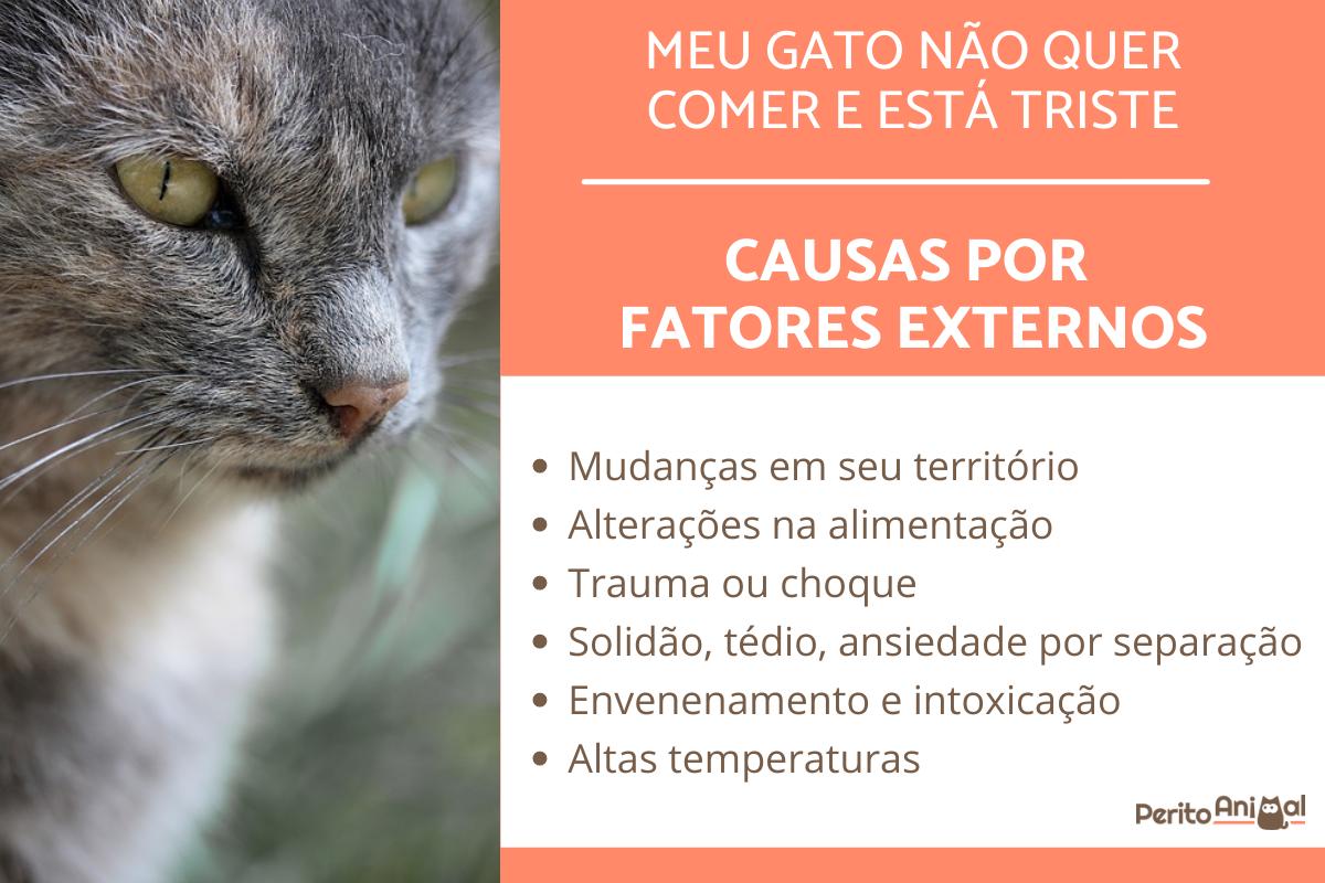 As causas de um gato sem apetite por fatores externos (provocados por algo no ambiente do animal), são: