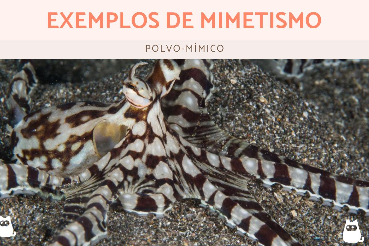 - O polvo-mímico (Thaumoctopus mimicus) pode imitar vários animais marinhos venenosos, como serpentes marinhas;