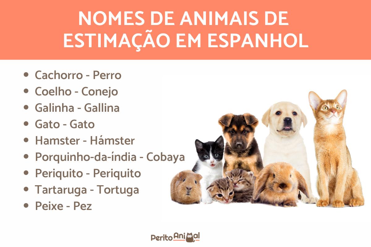 Muitos tutores se perguntam como é cachorro em espanhol e a resposta é "perro", pronunciando-se como se tivesse apenas um "R" pela fonética brasileira. Listaremos aqui os nomes de animais de estimação em espanhol mais populares. À esquerda, o nome em português e, ao lado, sua tradução para o espanhol.