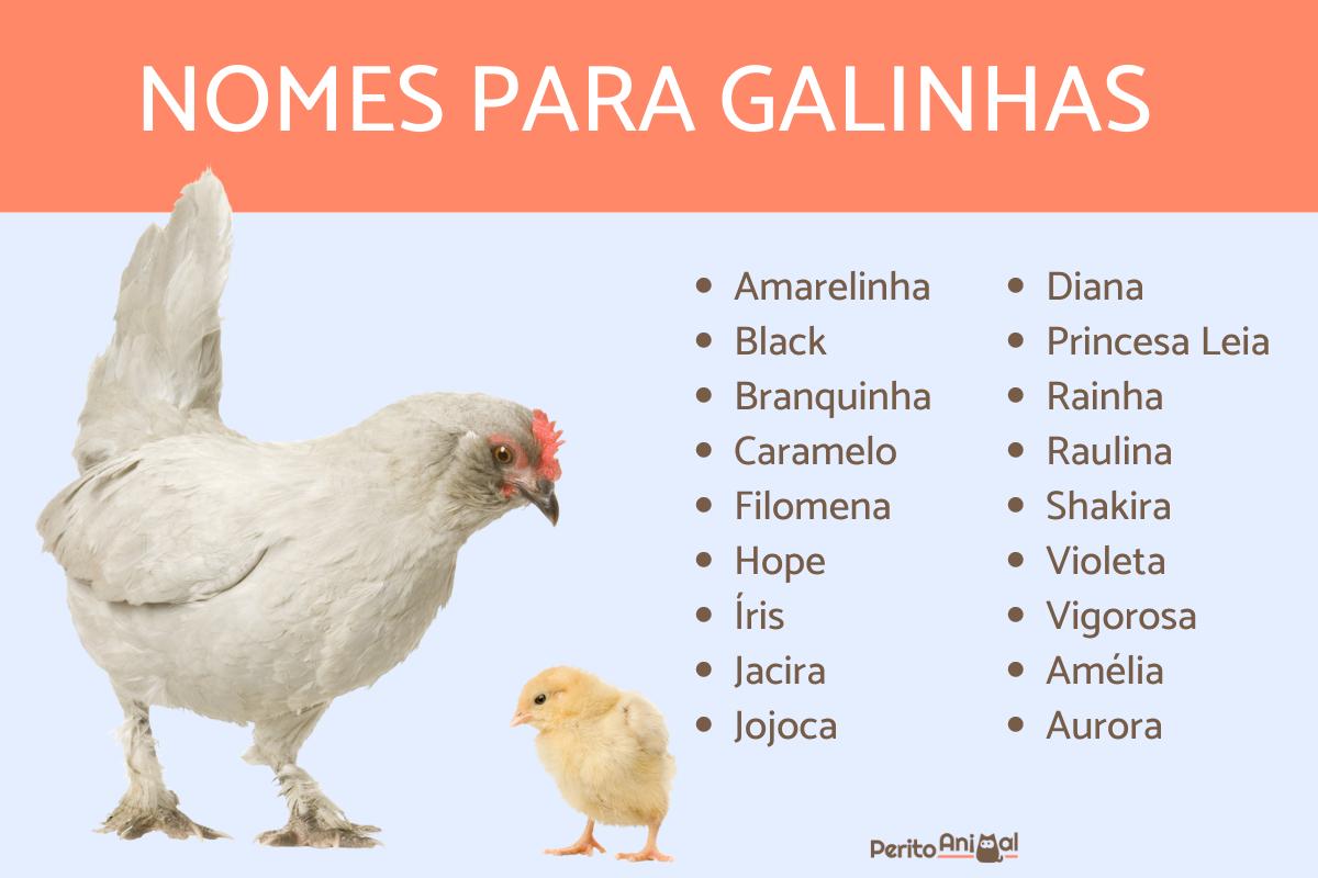 Você tem uma galinha de estimação e deu para ela um nome diferente dos que aqui estão? Compartilhe connosco!