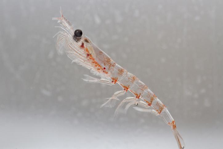 Chamamos de krill alguns crustáceos diminutos, normalmente transparentes, que habitam os oceanos de todo o mundo. Esses animais formam grupos de milhares e milhares de indivíduos que podem se estender por quilômetros. Por este motivo, são a base da alimentação das baleias e de muitos outros predadores marinhos.