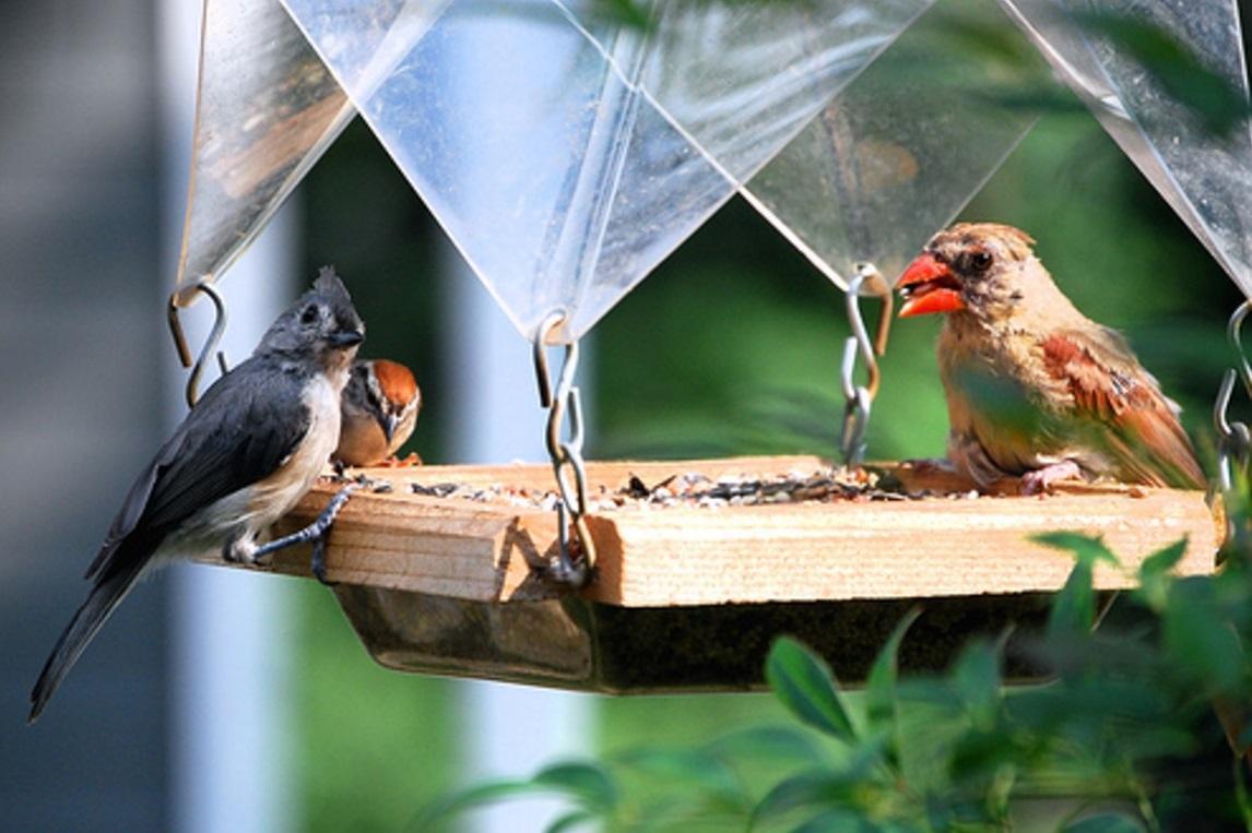 O mais comum é comprar ou fazer um comedouro de pássaros e pendurá-lo nas proximidades da casa. No comedouro você pode colocar desde migalhas de pão, de preferência integral e sempre umedecido, até misturas de sementes ou guloseimas para aves que podem ser encontradas em lojas. Quanto aos alimentos caseiros, arroz e ovos cozidos, frutas maduras, sementes de girassol ou milho, mas não pipoca, porque é muito salgada, são alternativas que podemos oferecer.