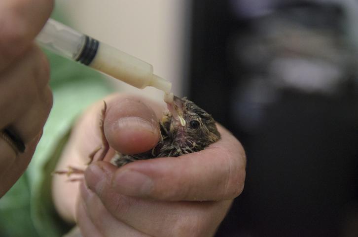 Por isso, ao se deparar com um filhote recém-nascido que você resgatará sem penas e coberto ou não de plumas, a primeira coisa a fazer é identificar a que espécie ele pertence, para saber o que filhote de passarinho come, uma vez que filhotes de pardal não comem a mesma coisa que melros, por exemplo. Você pode se guiar pela forma do bico, que geralmente é fino, alongado e reto nas aves insetívoros e mais curto e cônico nas aves granívoras. De qualquer forma, em lojas especializadas, é possível encontrar uma papa de criação apropriada. Um exemplo de papa caseira pode ser feita com ração de gato embebida em água, ovo cozido e farinha de rosca, tudo misturado até obter uma consistência pastosa.