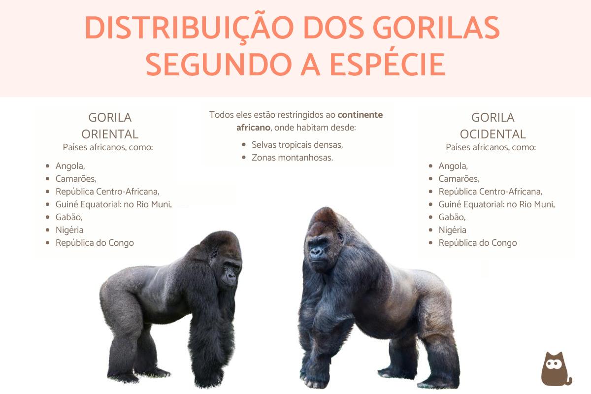 Vamos conhecer a distribuição geográfica e específica de cada espécie de gorila: