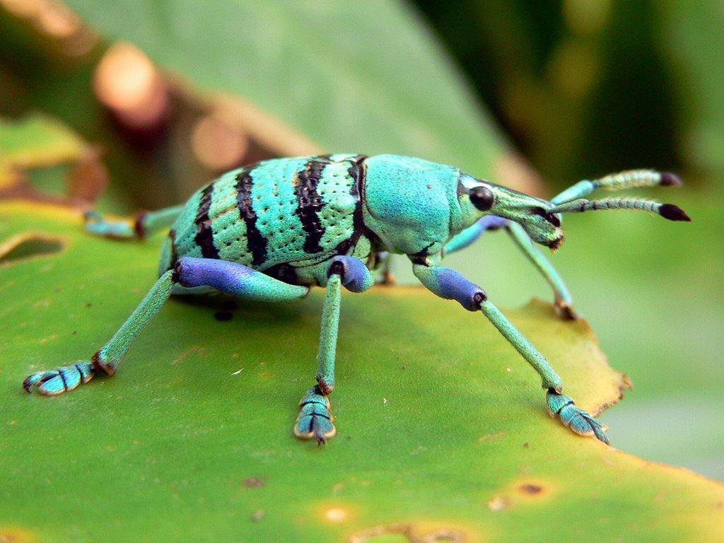 Este besouro pode ser encontrado na Papua nova Guiné. Pertence à família dos curculionides, também conhecidos como gorgulhos. Suas cores azul elétrico e verde-água - além caracterizarem-no como um inseto lindo,indicam seu mal sabor aos predadores. Então, os besouros evitam uma morte desnecessária e, os predadores, um desgosto. Este tipo de comunicação visual se chama aposematismo.