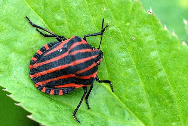 O percevejo das riscas é herbívoro e pode ser visto facilmente em plantas umbelíferas como o funcho, o endro e a cicuta. Suas cores vivas, como no caso anterior do gorgulho azul, supoem uma advertência sobre seu sabor desagradável.