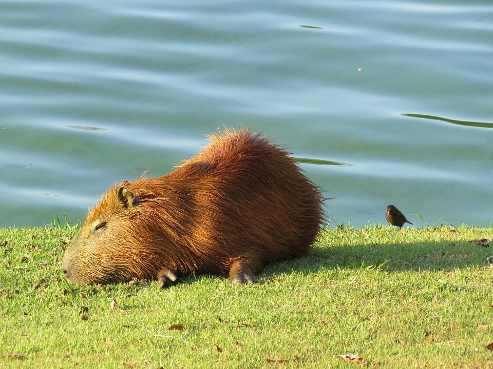 A capivara é o maior roedor do mundo. É um animal aquático, pois seu habitat requer zonas úmidas, manguezais e áreas litorâneas de águas calmas com uma profusão de vegetação. É um animal muito social, que vive em grupos. É um herbívoro cuja distribuição territorial se estende desde a América Central até o sul do continente sul-americano.